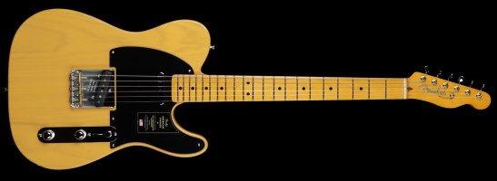 The American Vintage II 1951 Telecaster features an ash body finished in Butterscotch Blonde to capture the tone and look of the original. The substantial ‘51 “U”-shaped hard rock maple neck plays like a dream with a 7.25” radius fingerboard and vintage tall frets. Characteristic of production in 1951, 12th fret face-dot spacing is narrow and the sole Phillips-head fastener on the guitar is at the truss rod nut. The triple brass saddle bridge, single-line “Fender Deluxe” tuners and Pure Vintage '51 Telecaster pickups deliver classic twang and authentic Fender style.