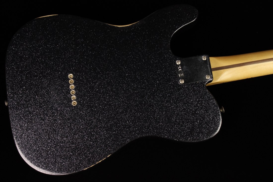 The Brad Paisley Esquire features a paulownia and spruce body finished in a stunning black sparkle Road Worn lacquer, a custom Enhanced “V”-shaped maple neck with a 9.5” radius fingerboard and custom pickups—including a Brad Paisley signature Seymour Duncan Secret Agent neck pickup hidden under the black and silver paisley pickguard.