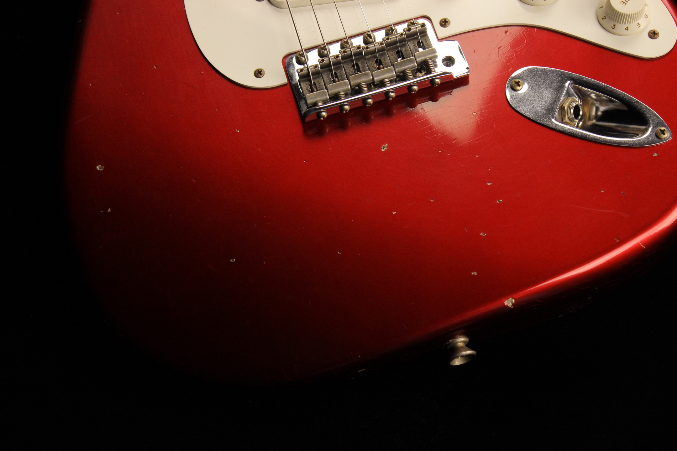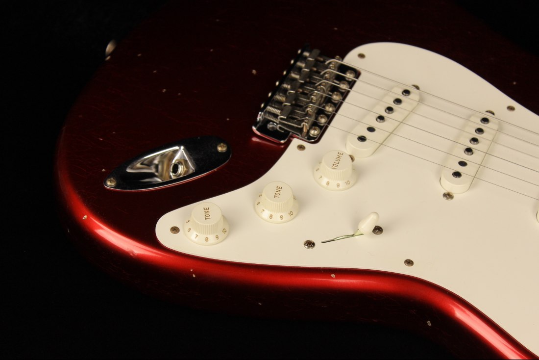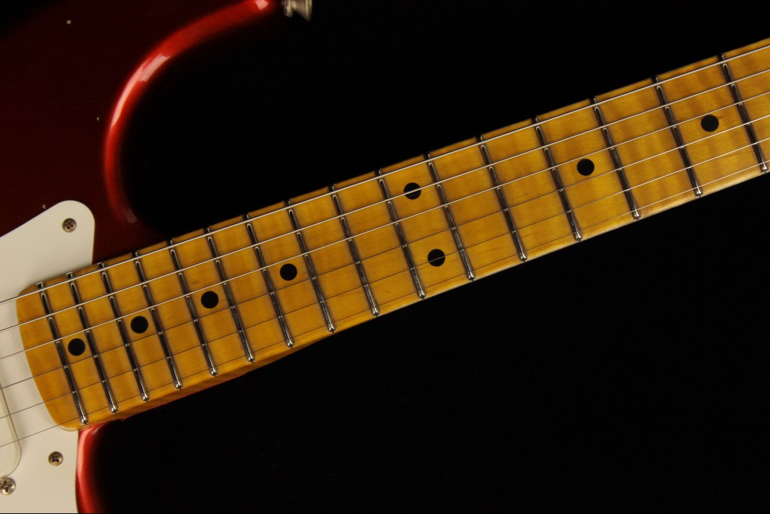 Electronics feature a set of Fender Custom Shop Handwound '57 Stratocaster Single Coil, with the middle one RWRP, and a Modern Stratocaster Wiring.