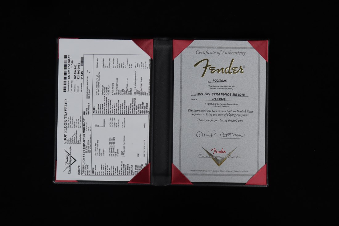 This Fender Custom 50's Stratocaster Quilted Maple Top NOS Masterbult David Brown is signed by Andy Hicks, one of the most promising names of the new Masterbuilder generation. His work blends a meticulous, modern approach with deep Fender tradition—no surprise his builds are becoming increasingly sought after.