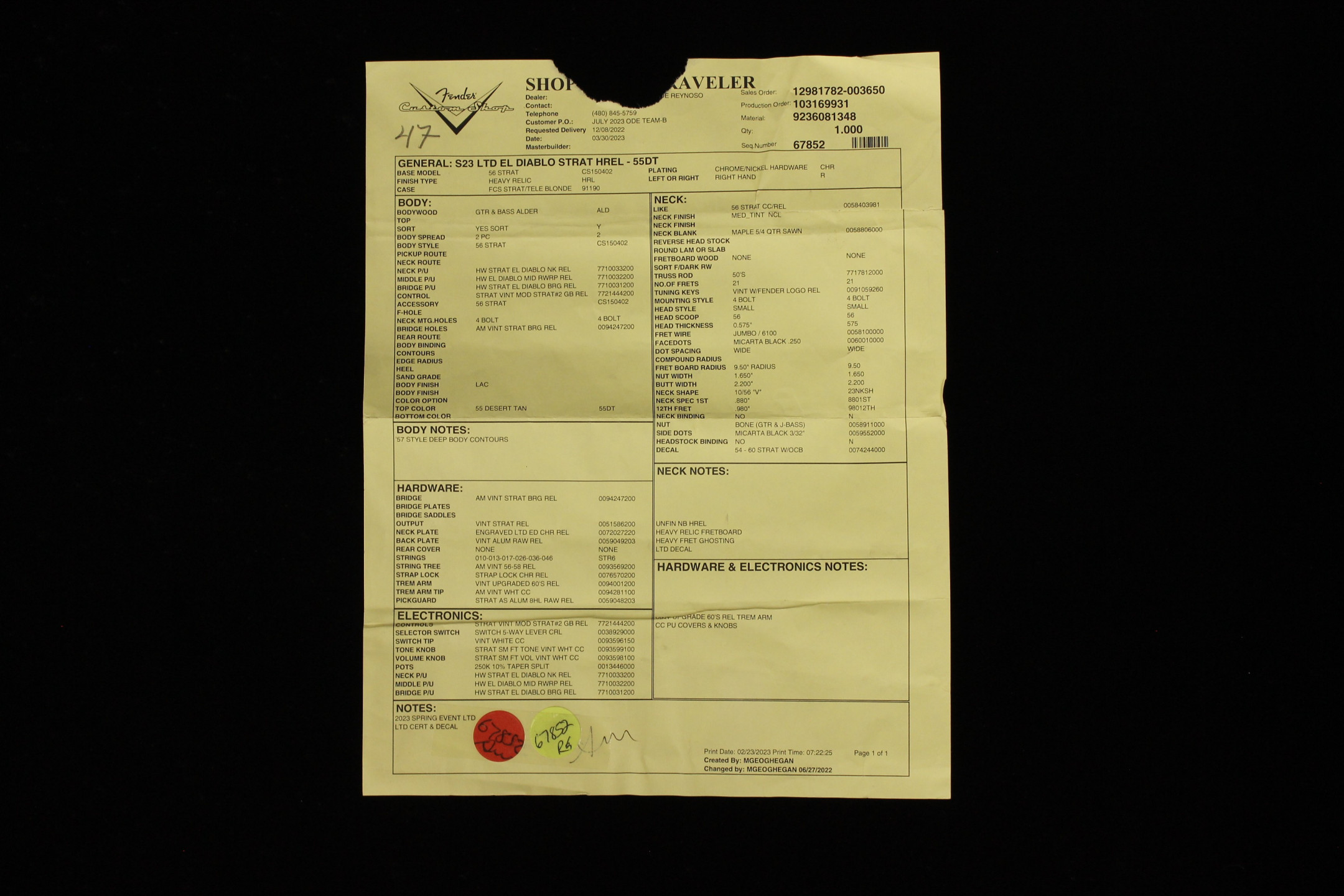 The Fender Custom Limited Edition El Diablo Stratocaster Heavy Relic was offered as a limited edition during the 2023 Fender Custom Shop Showcase Dealer event.