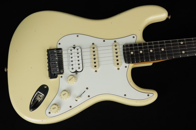 This Fender Custom 1960 Stratocaster HSS Journeyman Relic was built as Custom Order and features modern specifications, but vintage tone. A "Hot Rod" instrument in other words. A traditional sort for lightweight alder body in Aged Vintage White...