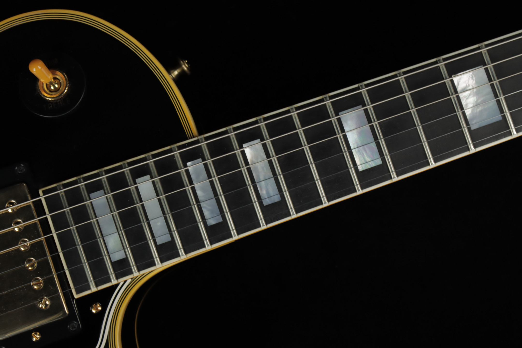 andcrafted by Gibson's elite Custom Shop luthiers, the 1957 Les Paul Custom Reissue VOS features top-shelf tonewoods, including a 1-piece mahogany body and a fast, comfortable Chunky C profile mahogany neck topped by a silky smooth ebony fingerboard with 22 Historic medium jumbo frets, Plek'd to perfection.