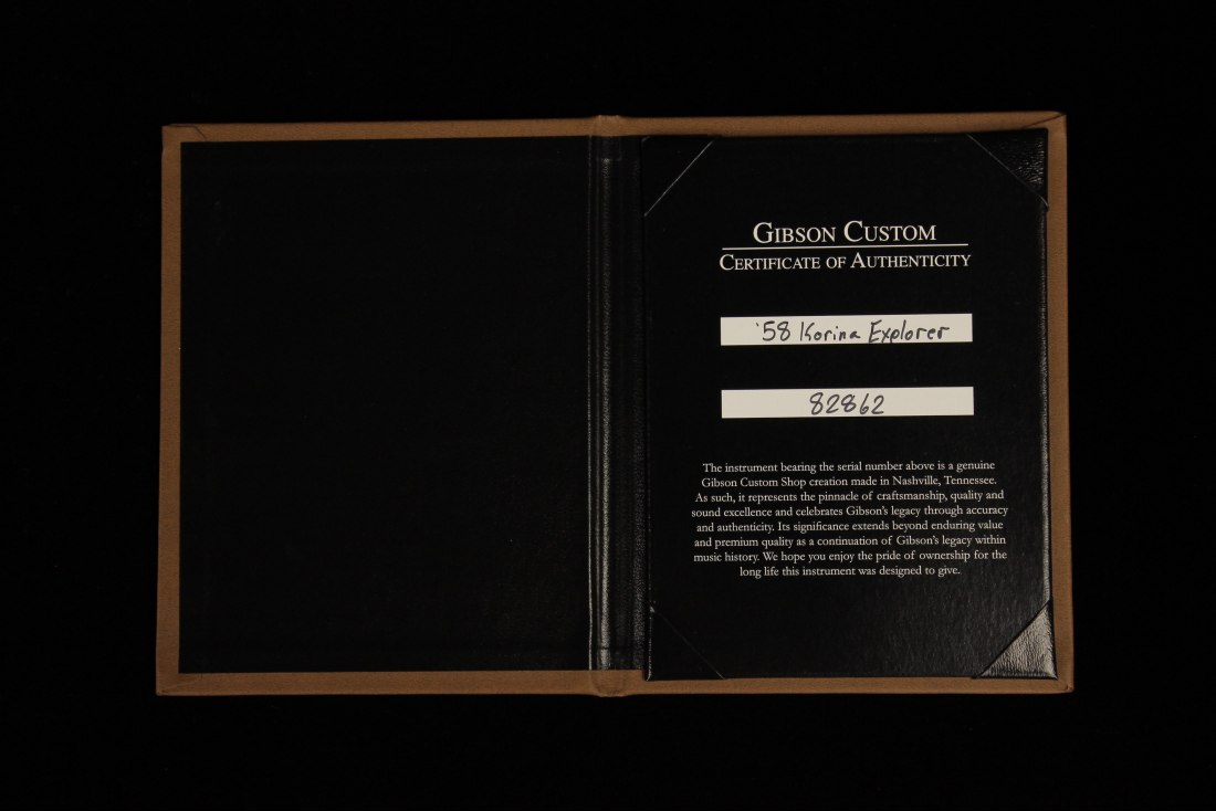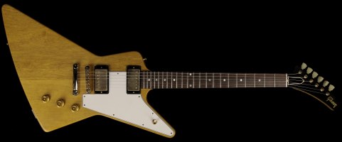 And when you plug in, Gibson's acclaimed CustomBucker pickups churn out vintage-accurate tones that are downright addictive. The 1958 Korina Explorer comes with a '50s-style brown-and-pink case.