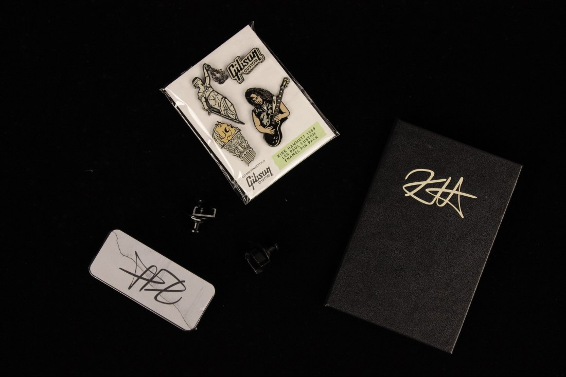 Limited to a mere 125 models worldwide (a fact that is sad but true), this guitar began life as a standard 1989 Les Paul with all the accouterments that entails, including a lightweight mahogany body, maple top, SlimTaper mahogany neck, and ebony fingerboard studded with block inlays. However, 30 years in Kirk’s hands has resulted in its fair share of mods and battle scars — the former taking shape in this guitar’s blacked-out hardware configuration, while the latter comes courtesy of Gibson Custom’s stunning Murphy Lab finish aging program. You also get a set of searing T-Type humbuckers requested by Kirk himself, in addition to a Fishman Powerbridge piezo system for plugged-in acoustic-like tones.