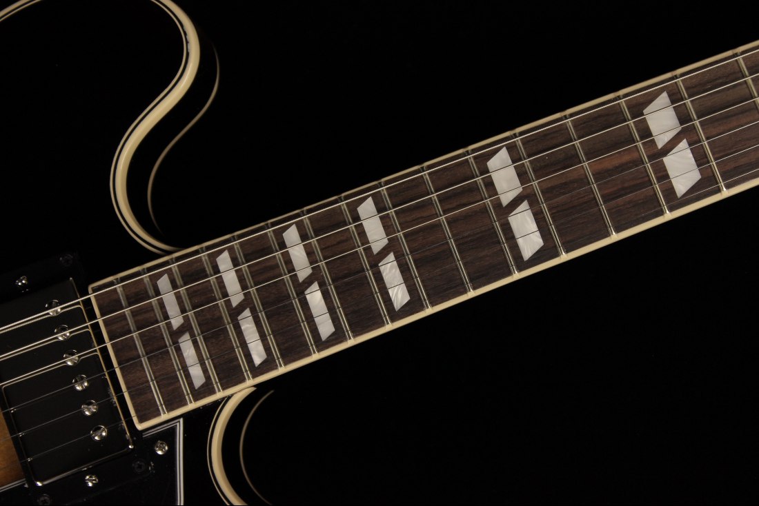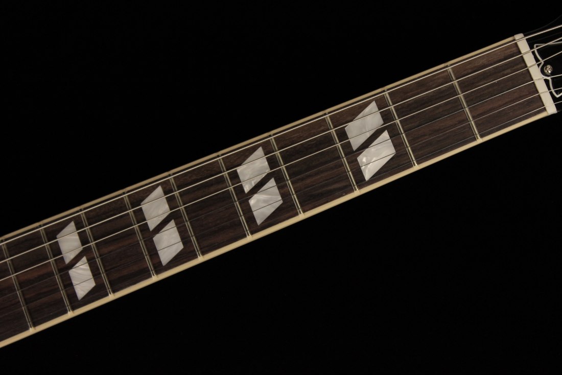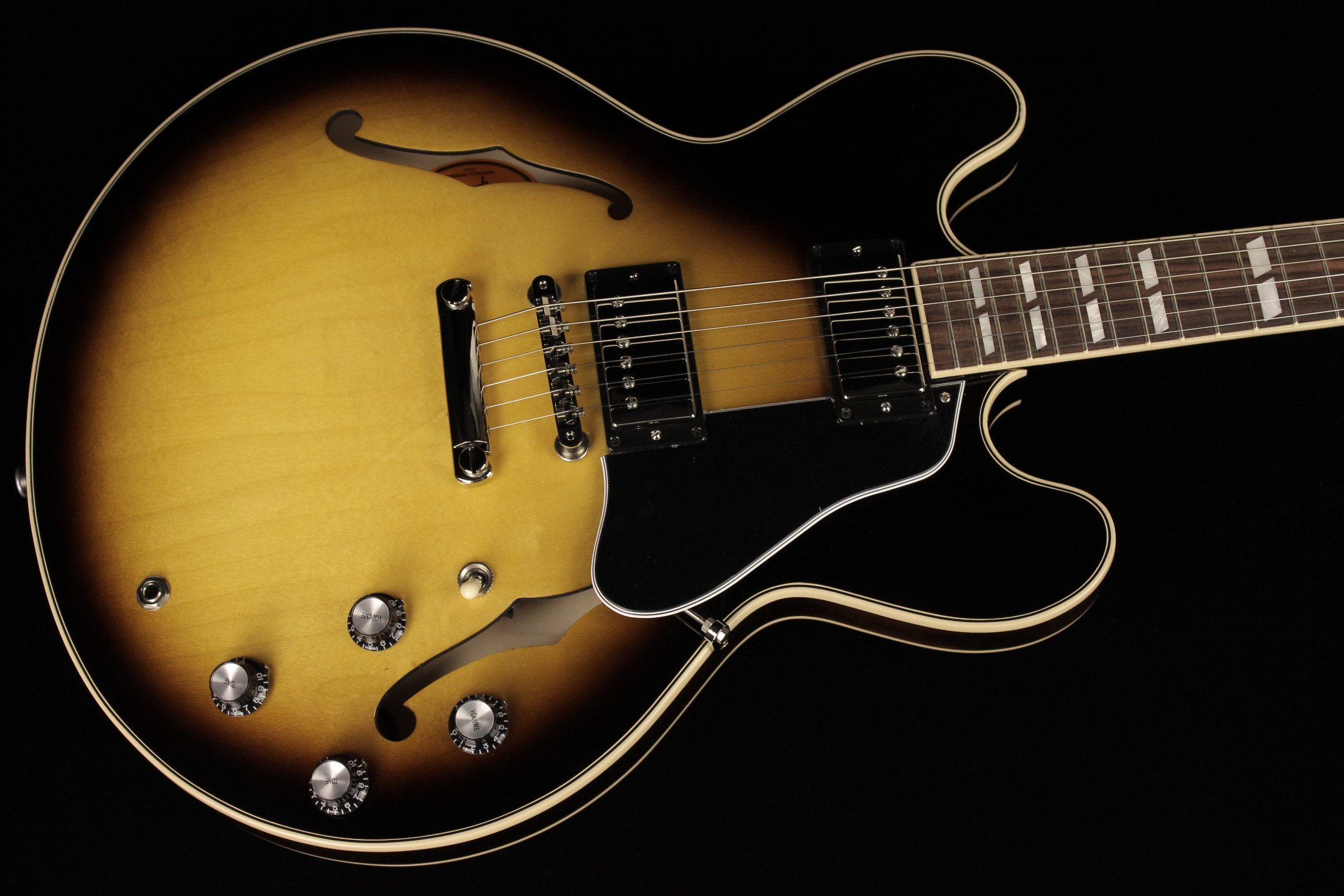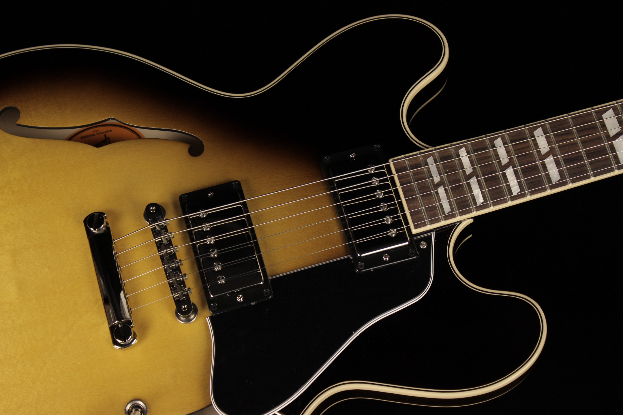 Gibson's latest ES-345 semi-hollow looks and plays like a 335 enhanced. Intact are the original '64 Split Parallelogram fingerboard inlays and rich multi-ply cream body binding. But gone are the 6-way Varitone circuit (loved by some, reviled by others) and stereo outputs. In their stead, you'll find a standard two-volume/two-tone control complement and speedy 3-way toggle. Where things get really interesting are the handwired Calibrated T-Type pickups with Orange Drop caps. This gives the 345 a mature and expressive tone that rivals some of the finest Thinlines ever built.