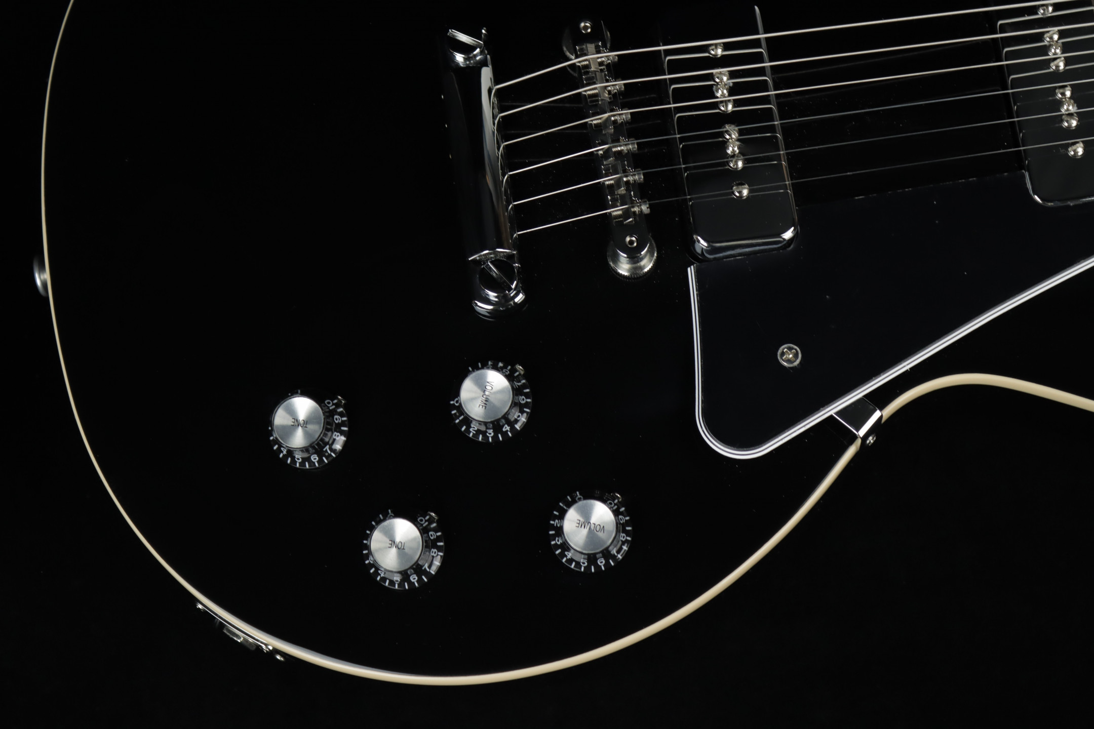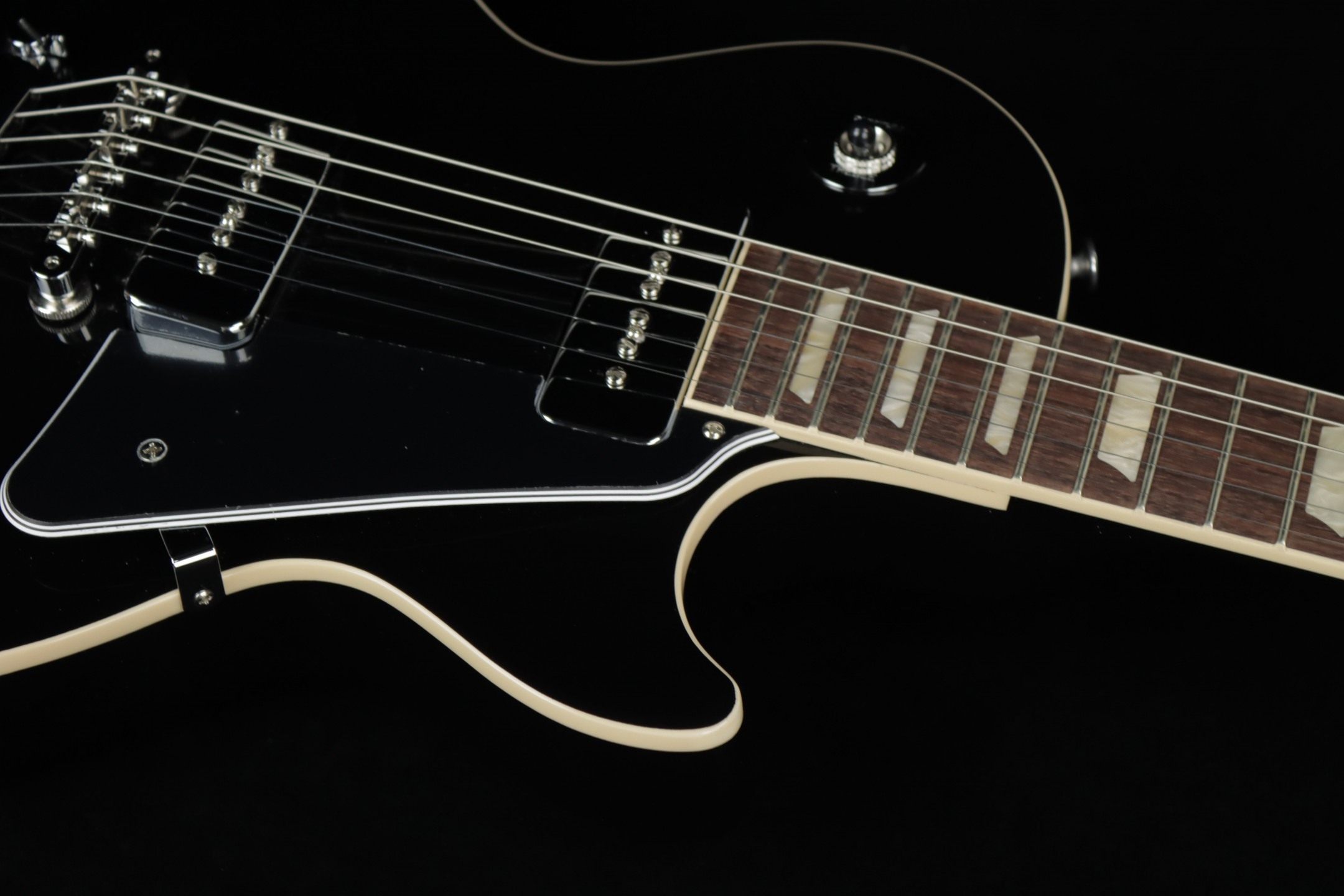 The electronics consist of a pair of chrome-covered Gibson P-90 Soapbar pickups, hand-wired and equipped with independent Volume and Tone controls, as well as a three-way selector switch.