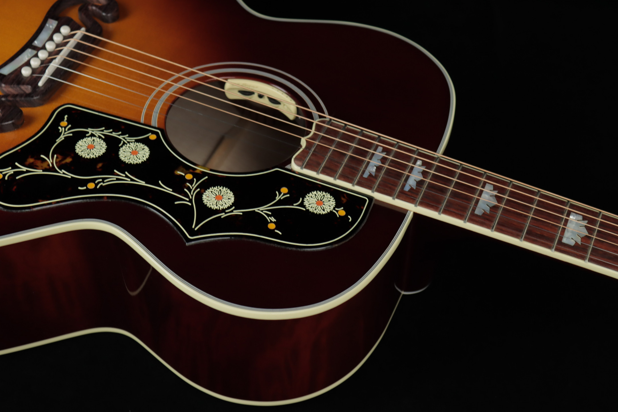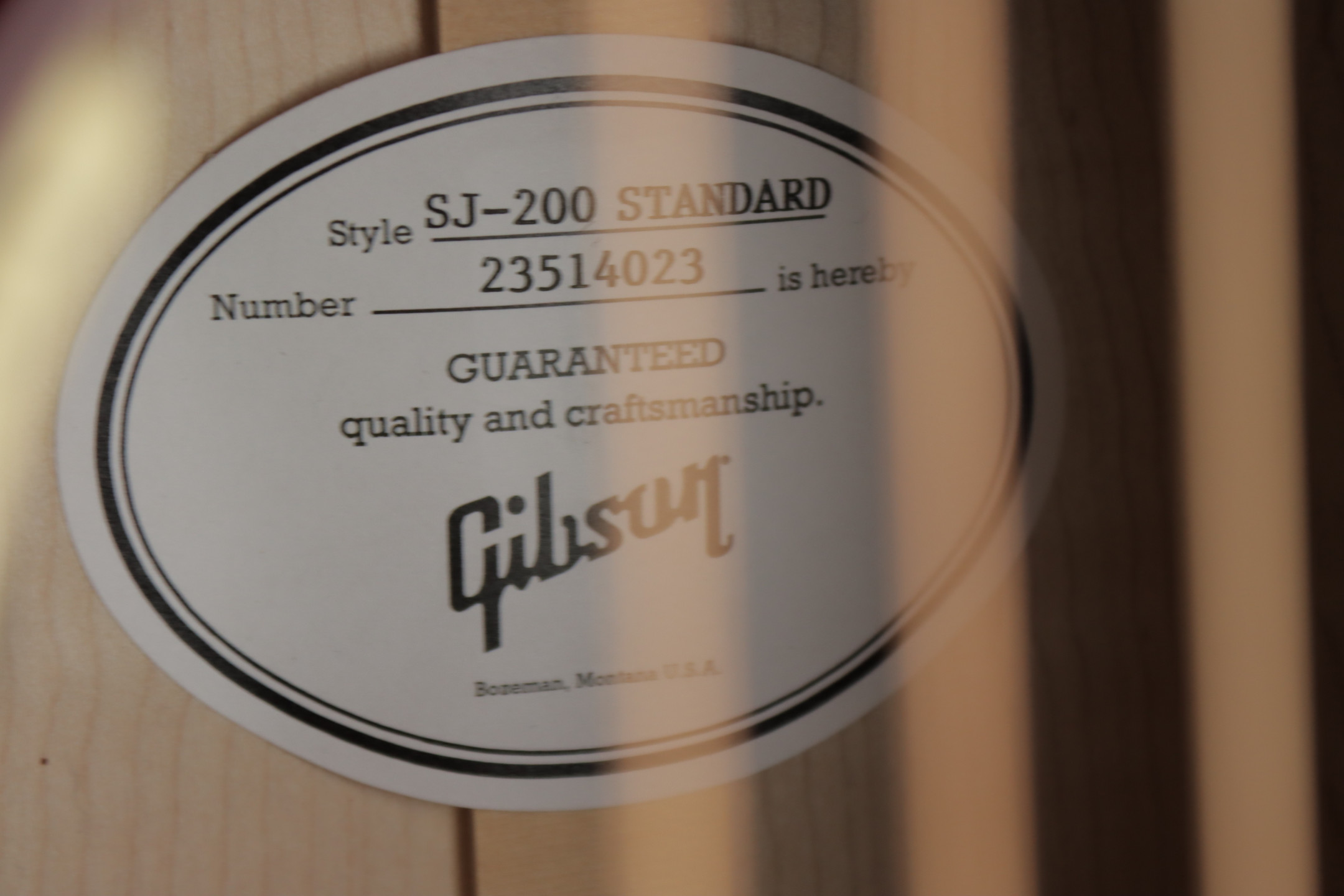 The J-200 Standard model from Gibson Acoustic is the quintessential Super Jumbo guitar. Crafted by the skilled hands of Gibson's master luthiers in Bozeman, Montana, USA, this guitar is the crown jewel of the Gibson Acoustic catalog.