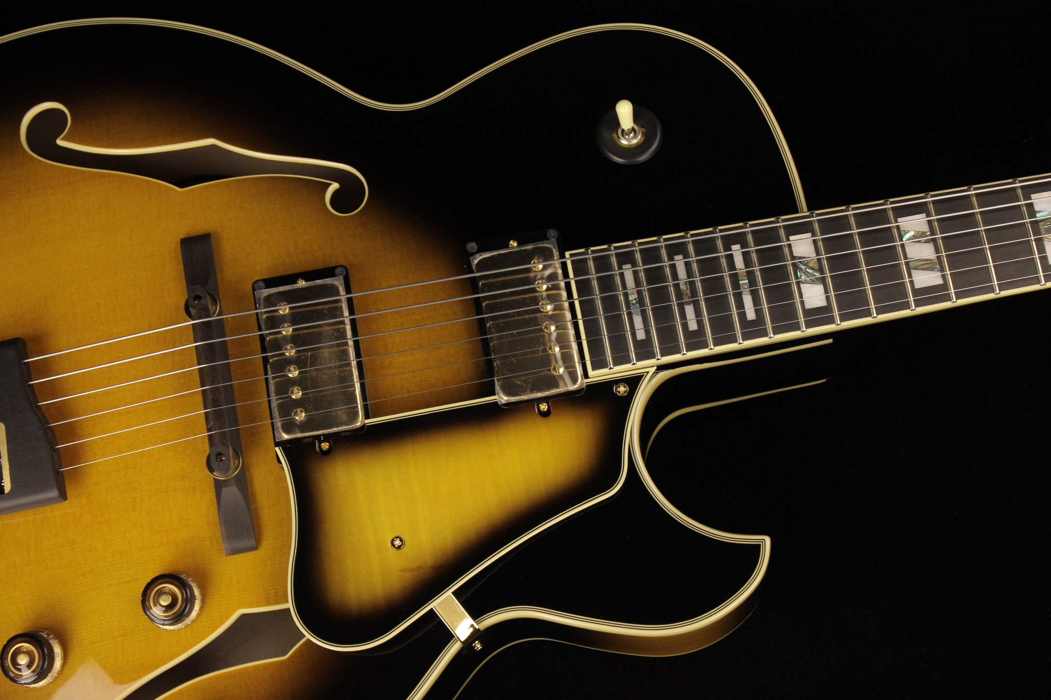 The Ibanez LGB300-VYS Semi Acoustic Guitar is loaded with Super 58 Pickups, giving it a crisp clean tone perfect for traditional jazz style guitar playing.