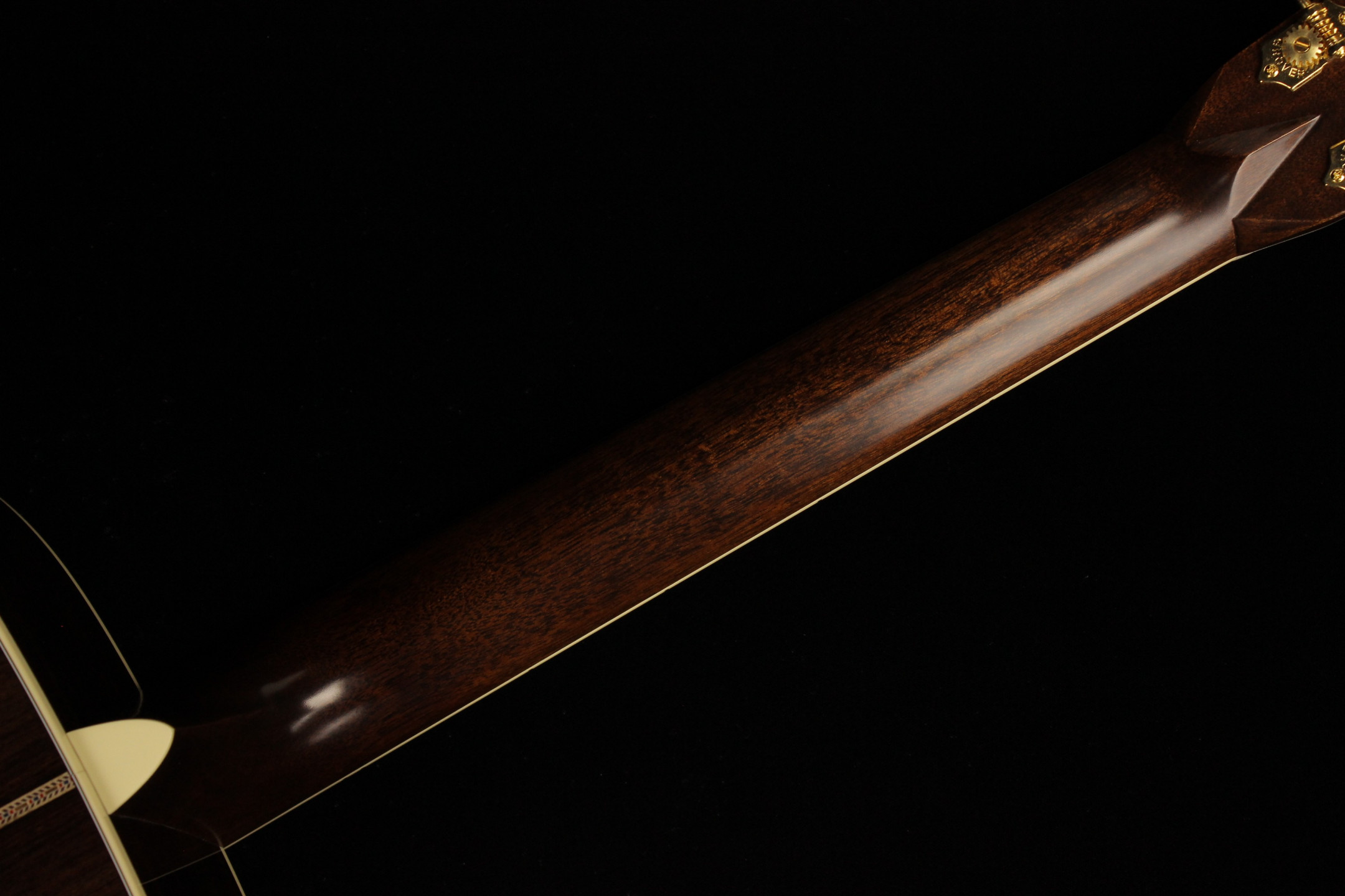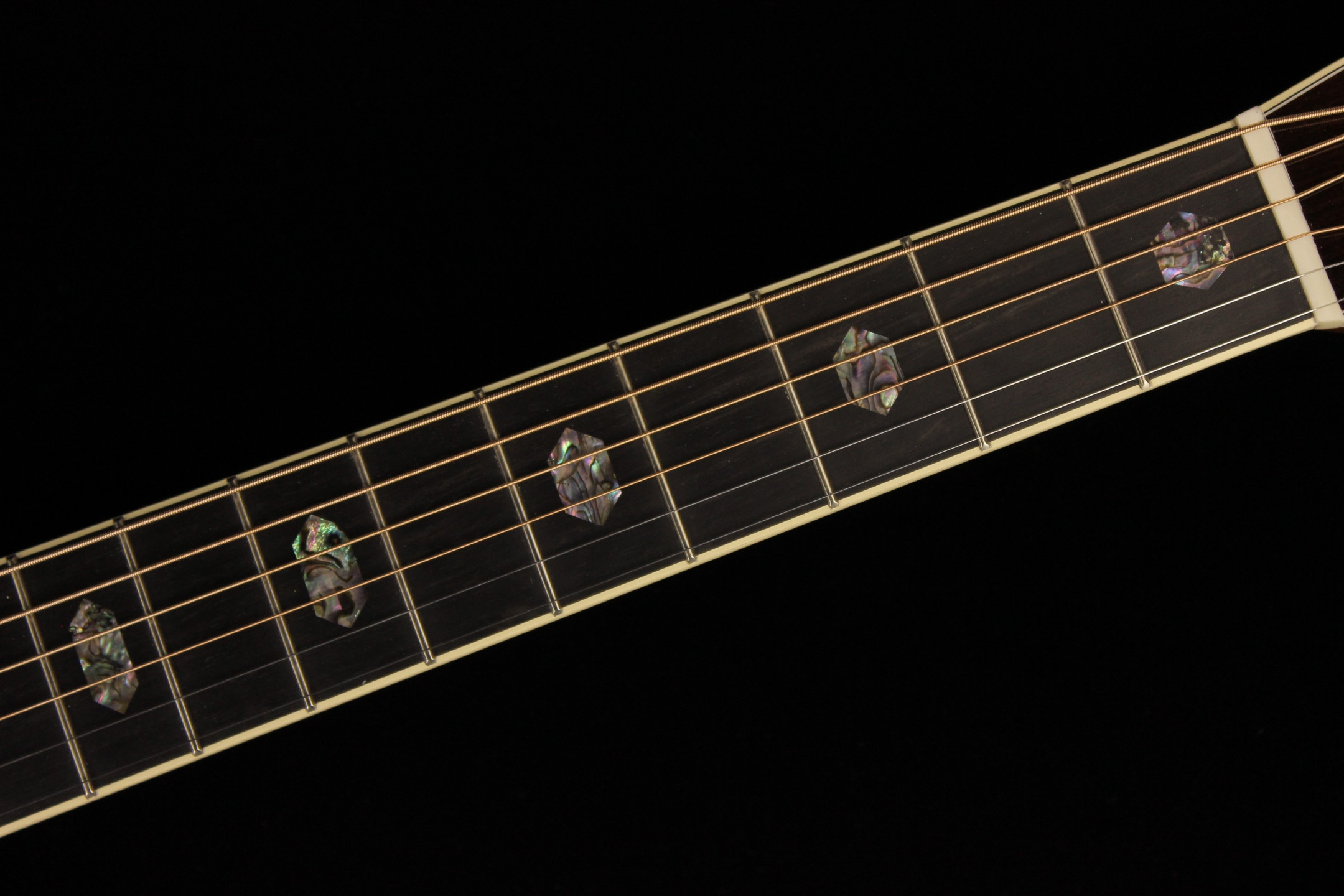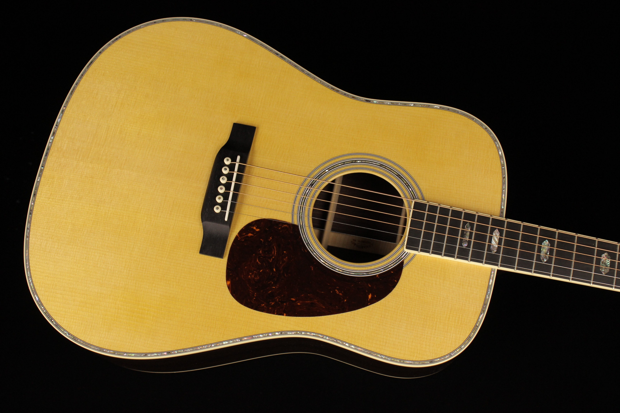 This stunning Martin D-41 exemplifies exactly what we are talking about. A solid spruce top with Forward Shifted Scalloped X Bracing is paired with solid rosewood back and sides, resulting in a warm and powerful sound. Aesthetically, the instrument is enhanced by abalone inlays, an ebony fingerboard, and gold hardware.