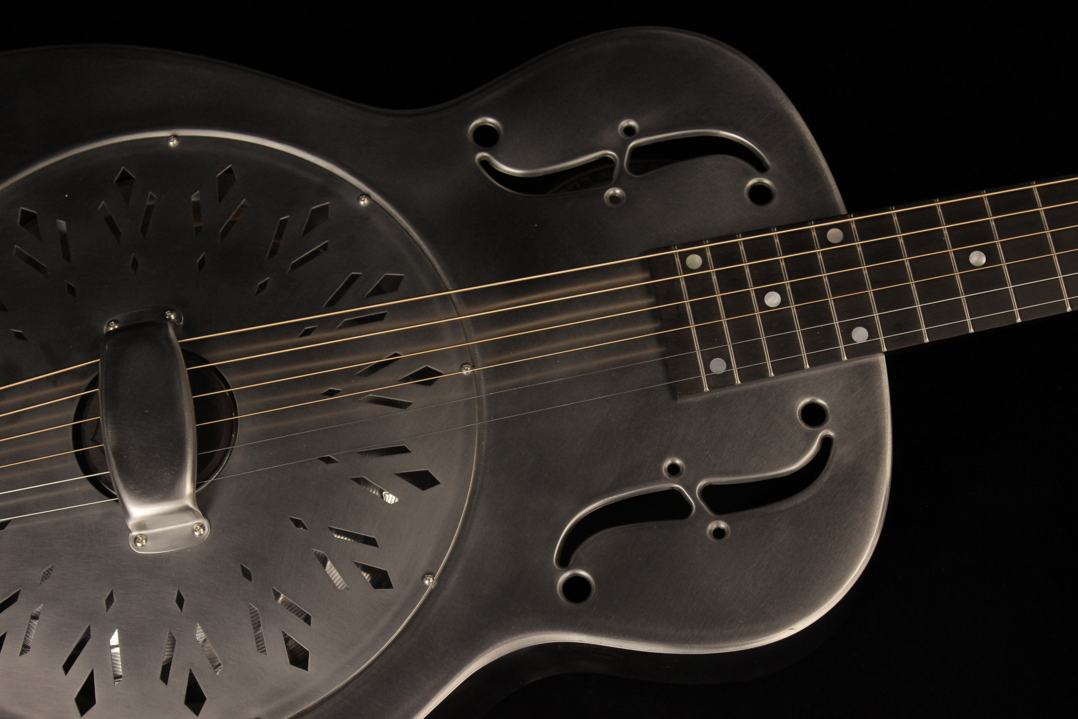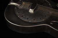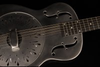 National's guitars, particularly their metal-bodied resonators, are known for their unique combination of aesthetics and durability. One standout is the National Raw Series, designed with a minimal wax finish on the body. This subtle coating not only enhances the natural, smooth feel of the instrument but also allows the metal to develop a rich patina over time, adding character with age. The steel body is complemented by a hardrock maple neck and a chicken-foot resonator cover plate, hallmarks of this series' blend of elegance and functionality.