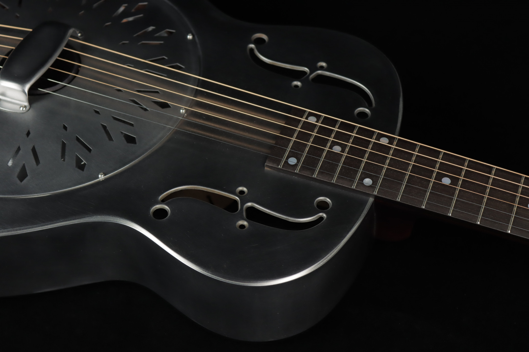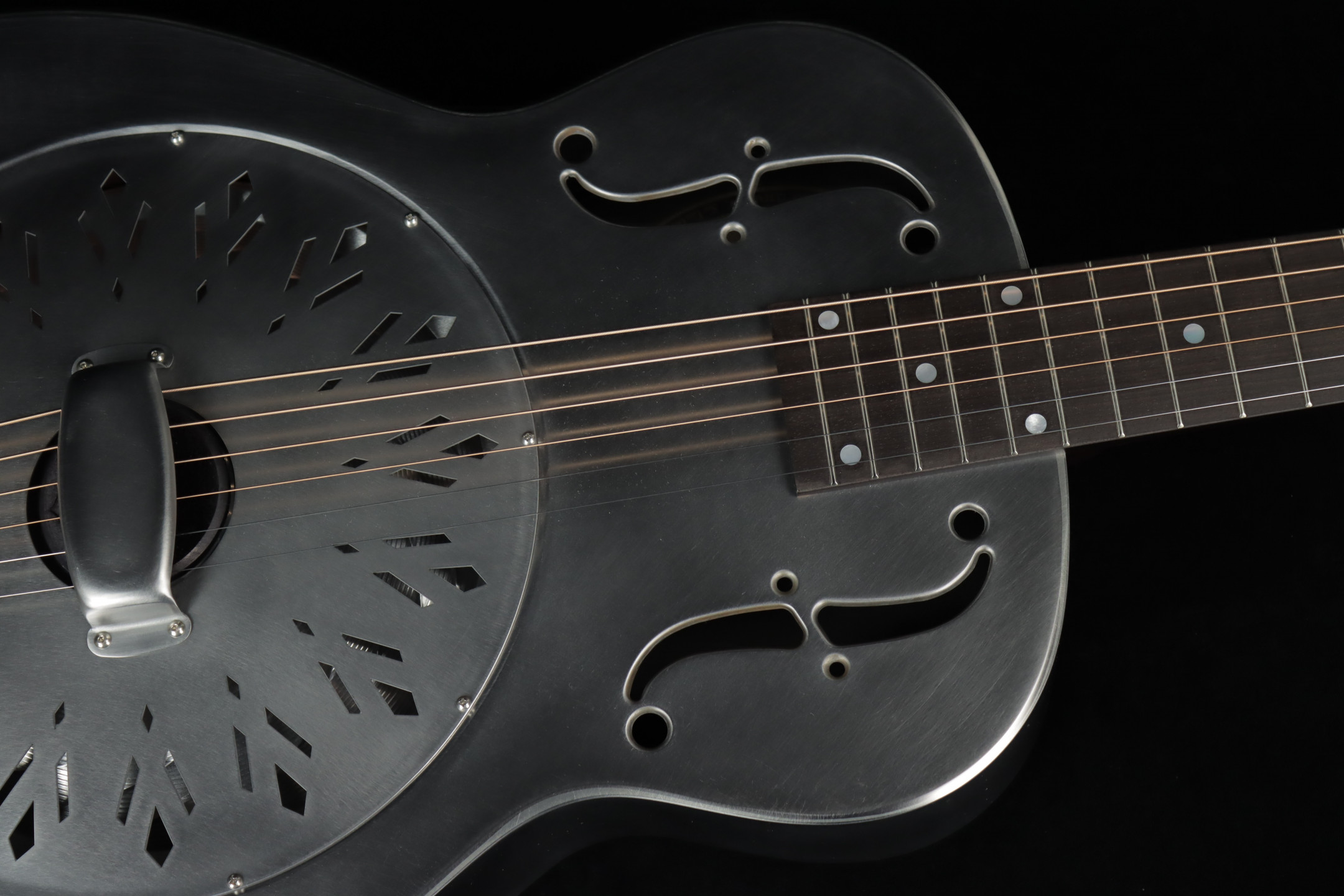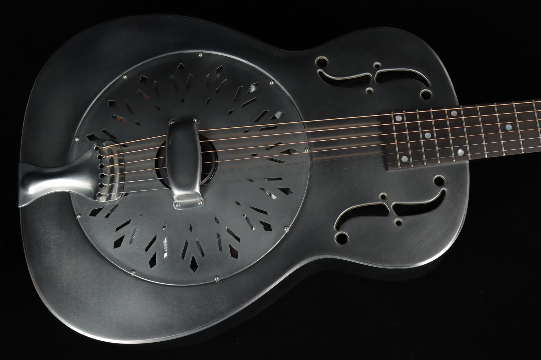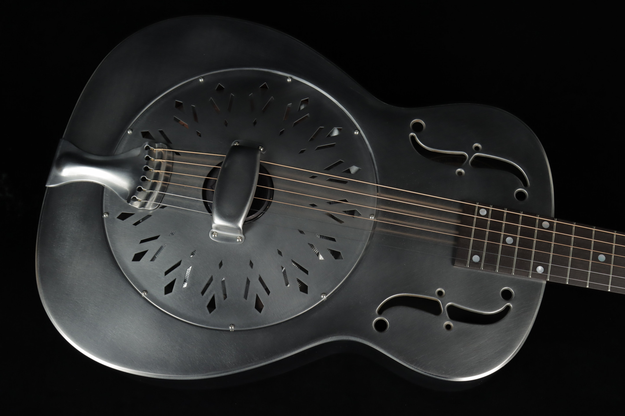 National's guitars, particularly their metal-bodied resonators, are known for their unique combination of aesthetics and durability. One standout is the National Raw Series, designed with a minimal wax finish on the body. This subtle coating not only enhances the natural, smooth feel of the instrument but also allows the metal to develop a rich patina over time, adding character with age. The steel body is complemented by a hardrock maple neck and a chicken-foot resonator cover plate, hallmarks of this series' blend of elegance and functionality.