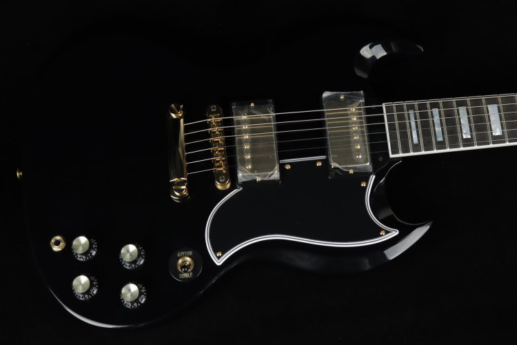 This SG is a reinterpretation of the historic "Solid Guitar" model with a Custom aesthetic. The stunning black finish, paired with the golden hardware and a total black look, makes the instrument captivating and alluring. From a technical...