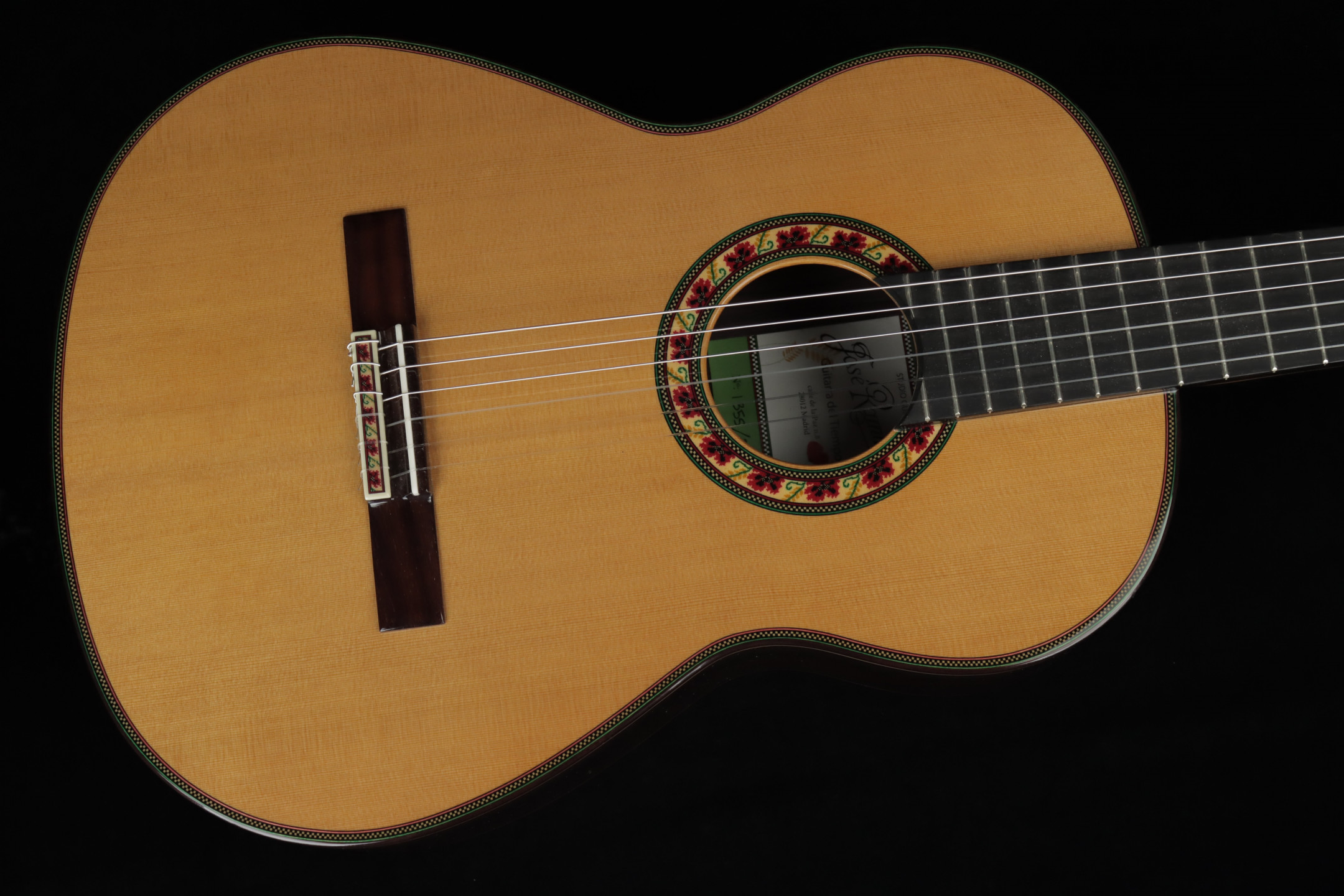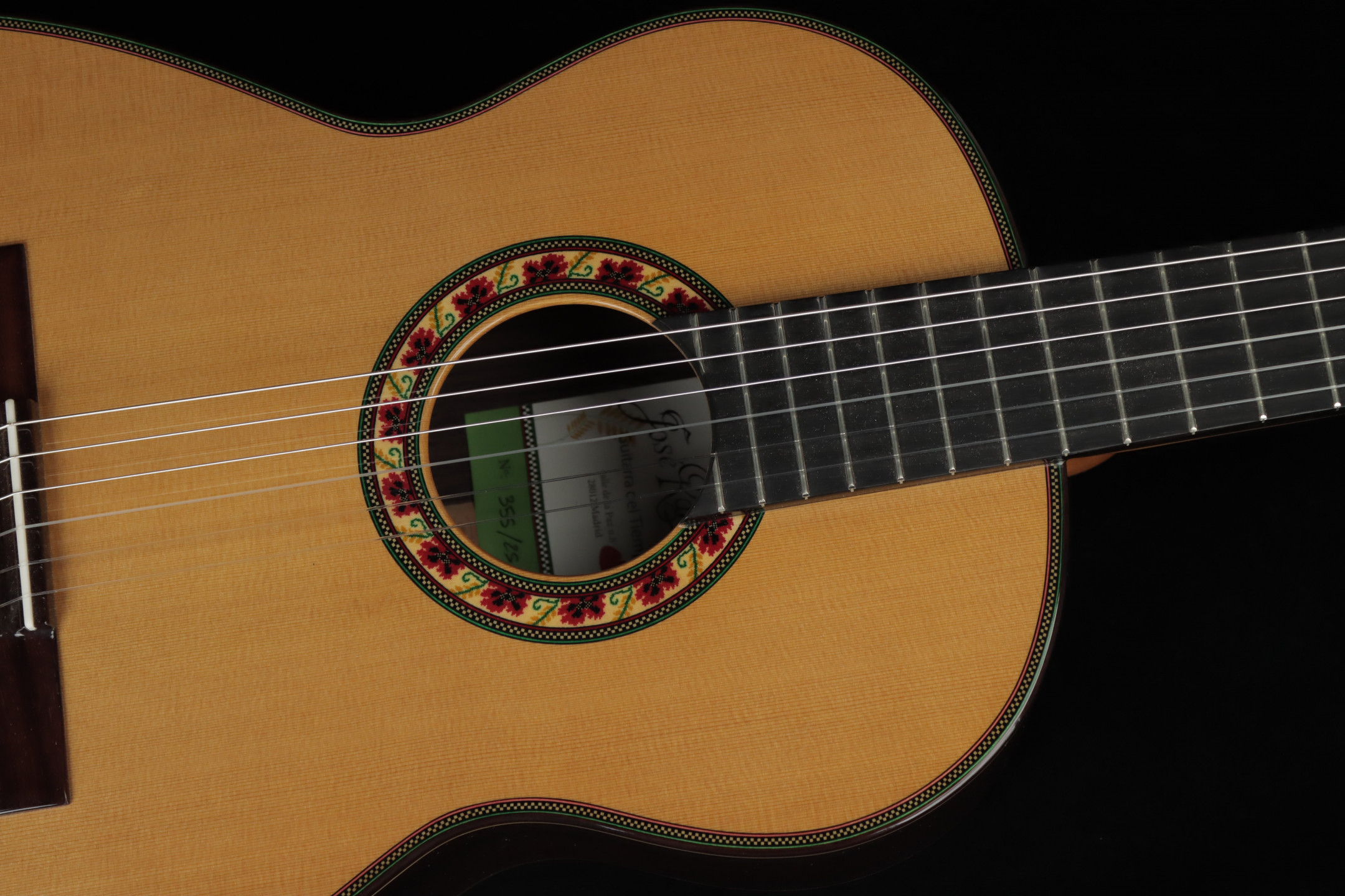 The Ramirez Guitarra del Tiempo features a solid red cedar top or solid spruce top, solid rosewood back and sides, cedar neck with ebony fingerboard and rosewood bridge. A very exclusive guitar and a special model for collectors.