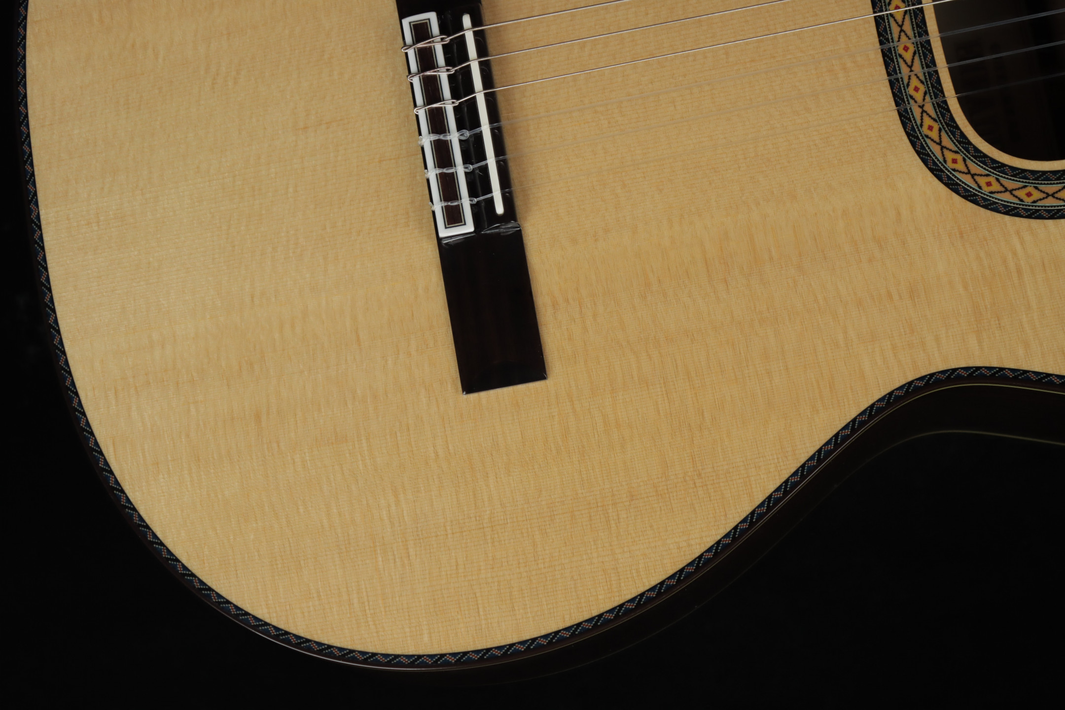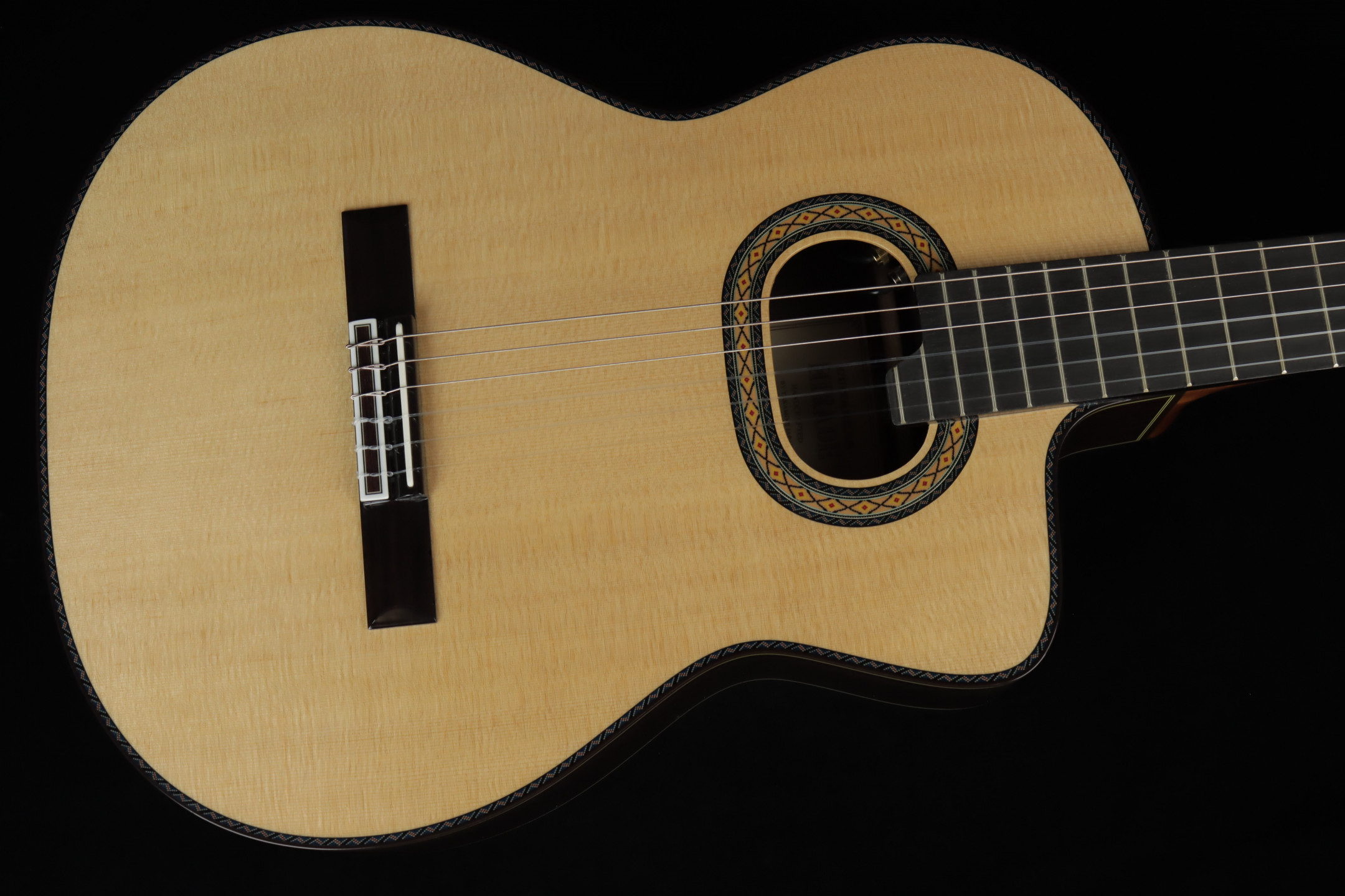 A striking example of the craftsmanship of Takamine luthiers, these guitars bear the name of the master luthier who designed them, Mass Hirade.