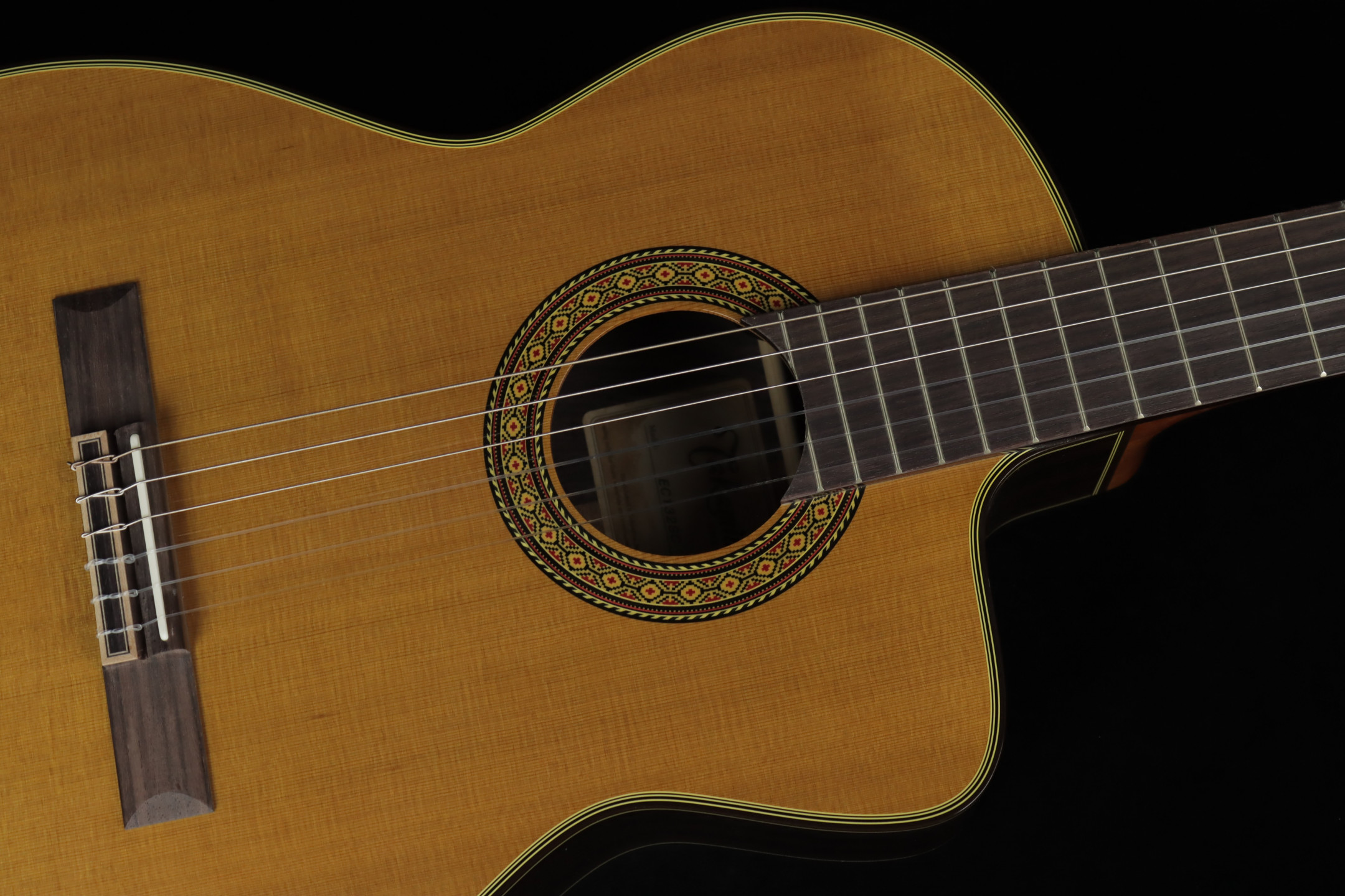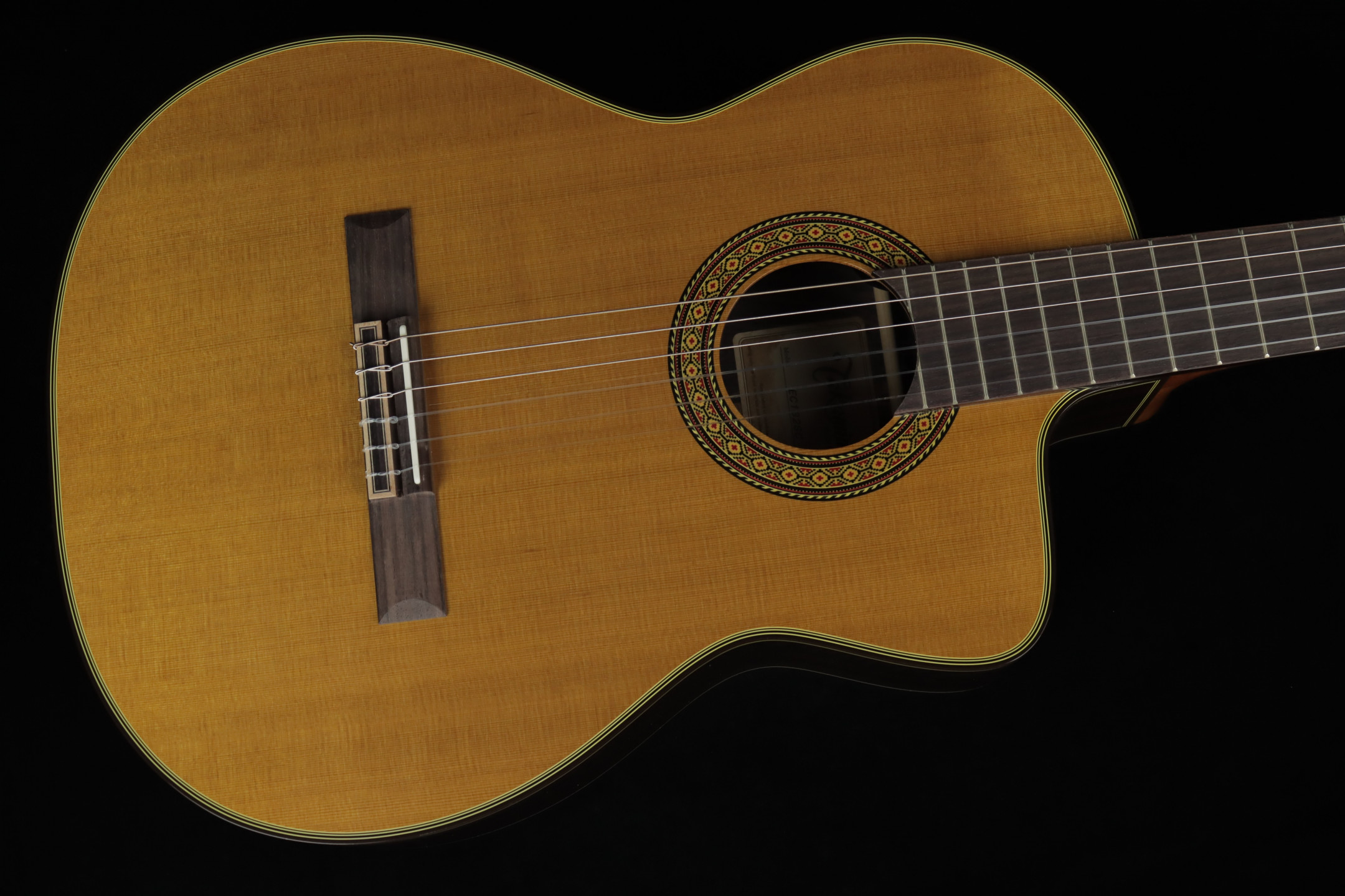 The solid cedar top produces a warm and soft sound, rich in harmonics and extremely expressive, while the rosewood back and sides ensure magnificent projection.
