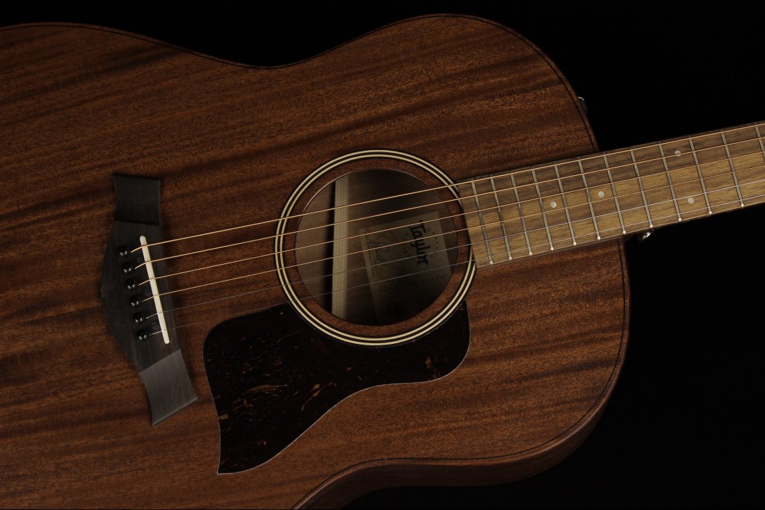 The Grand Pacific AD27e slope-shoulder dreadnought is solid Taylor tonewoods (mahogany and sapele), each with minor cosmetic imperfections to honor the mature sound and workhorse aesthetic these early guitars are known for. Taylor's V-Class Bracing gives the AD27e impressive sustain and a clean, pure tone that stands up to even the scrutiny of the studio. All in all, the American Dream Taylor AD27e is a professional instrument that comes in at a price that will ensure you're not afraid to take it on the road. Onboard Taylor ES2 electronics — a hallmark of all top-tier Taylors — make the AD27e a fantastic option for plug-and-play gigging and recording.