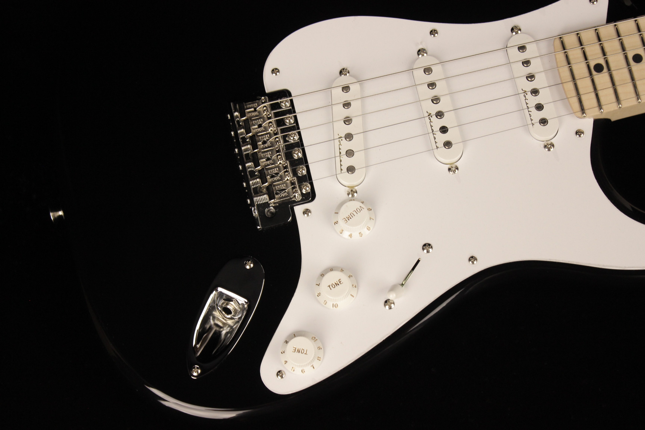 Built to Clapton’s specs, the Custom Shop Eric Clapton Signature Stratocaster® guitar features an alder body, special soft V-shaped maple neck, three Vintage Noiseless™ pickups, blocked tremolo and Clapton’s signature on the headstock.