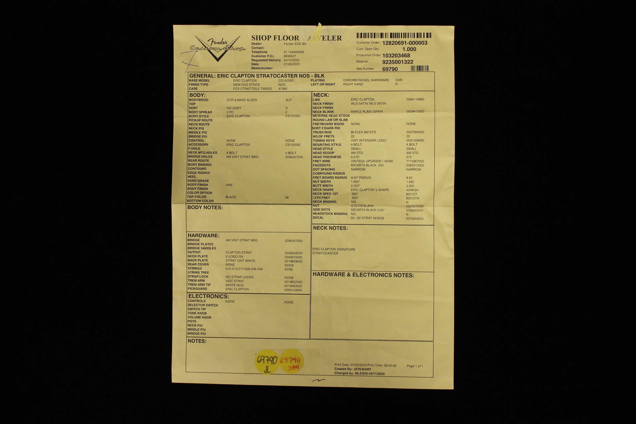 Fender Custom Eric Clapton Signature Stratocaster NOS - BK