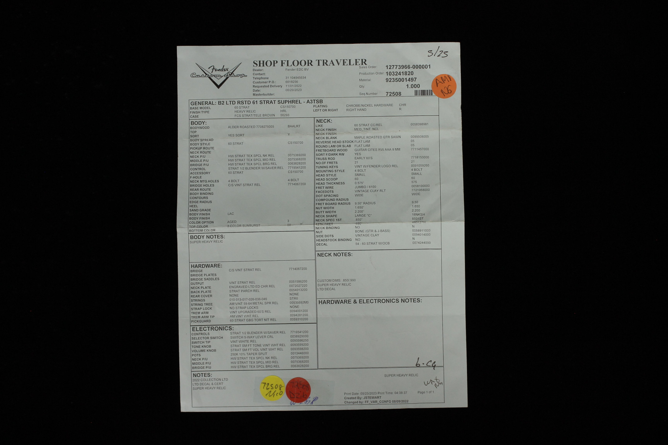 Fender Custom Limited Edition Roasted '61 Strat Super Heavy Relic - A3CS