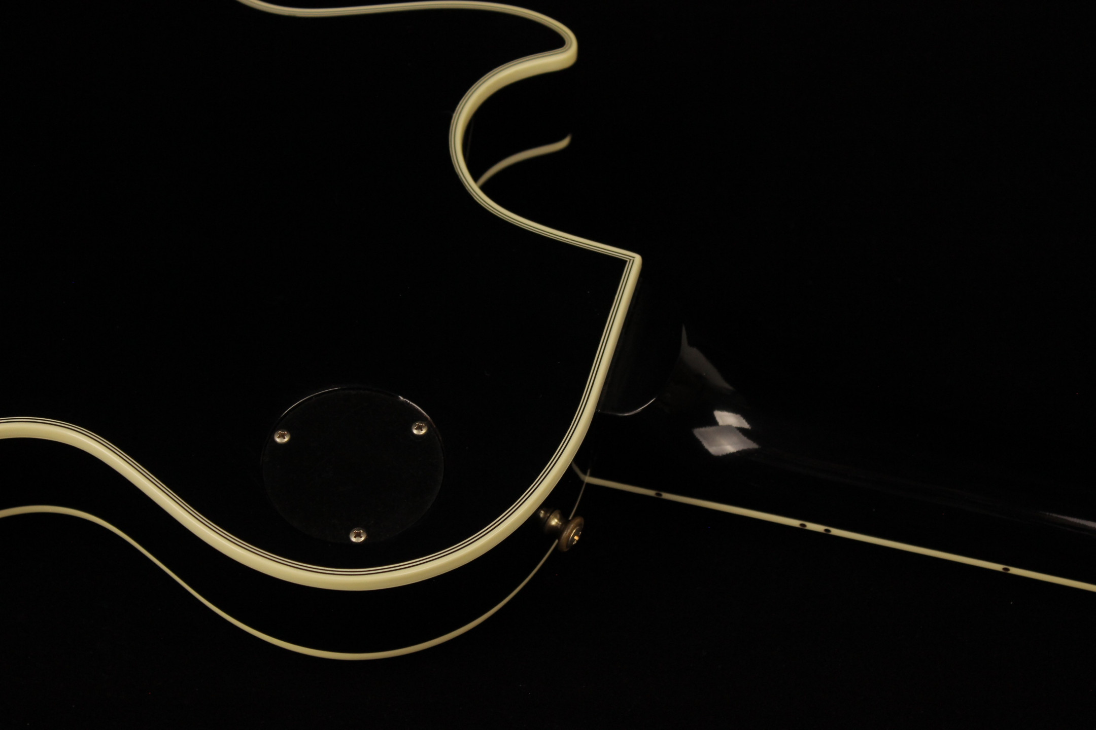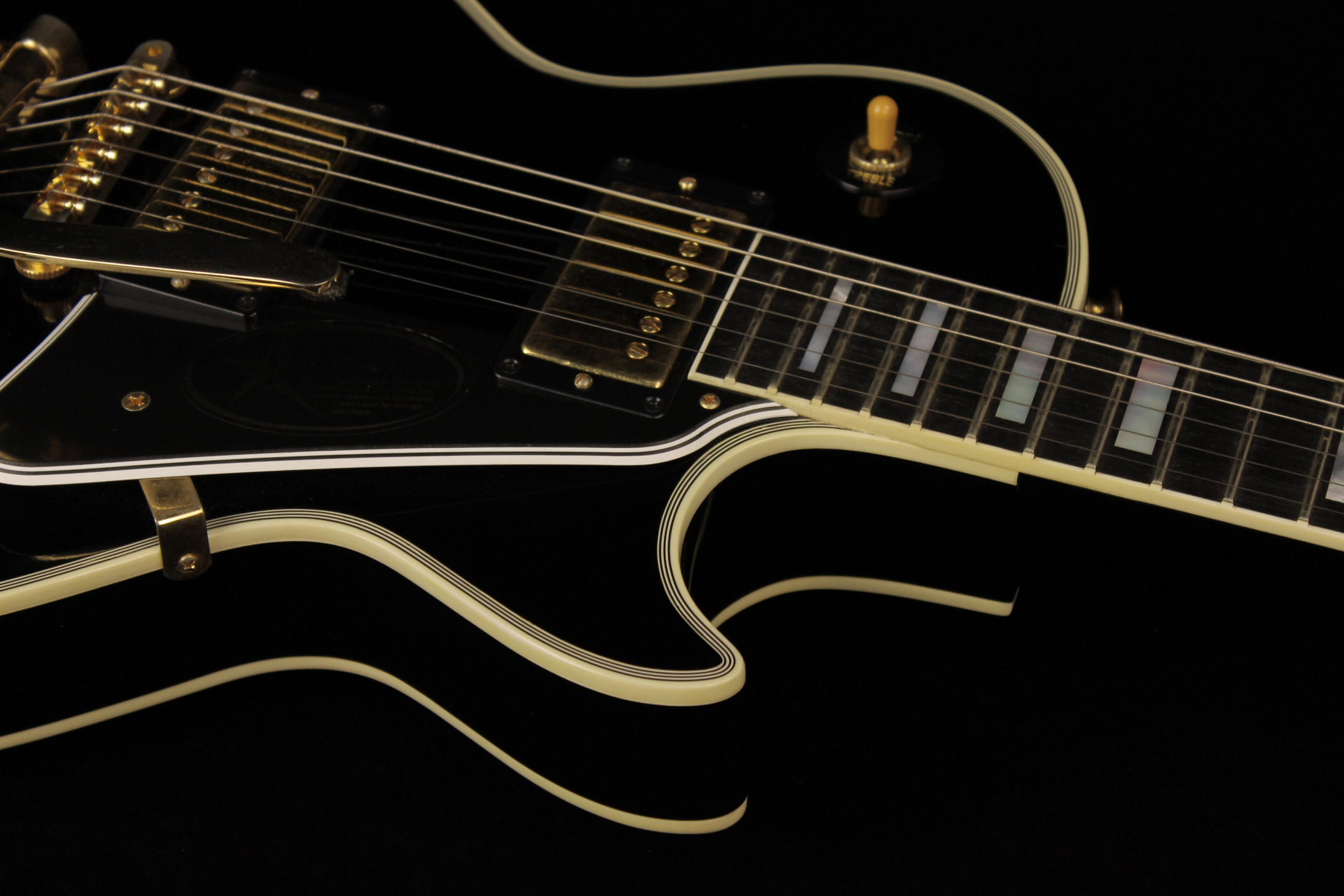 In 1957, in parallel with the introduction of the first Les Paul Goldtop with PAF pickup (the first humbucker pickup), a “deluxe” version of the Les Paul model, the Gibson Les Paul Custom, was added to the catalog. This quickly became a classic and went down in history as the Black Beauty, for its captivating look. Technically, this guitar is characterized by a one-piece carved mahogany body, without a maple top. This feature makes this guitar unique within the Historic Collection division: not having a maple top, this body enhances the midrange frequencies more. The result is a warm, full sound with fantastic sustain.