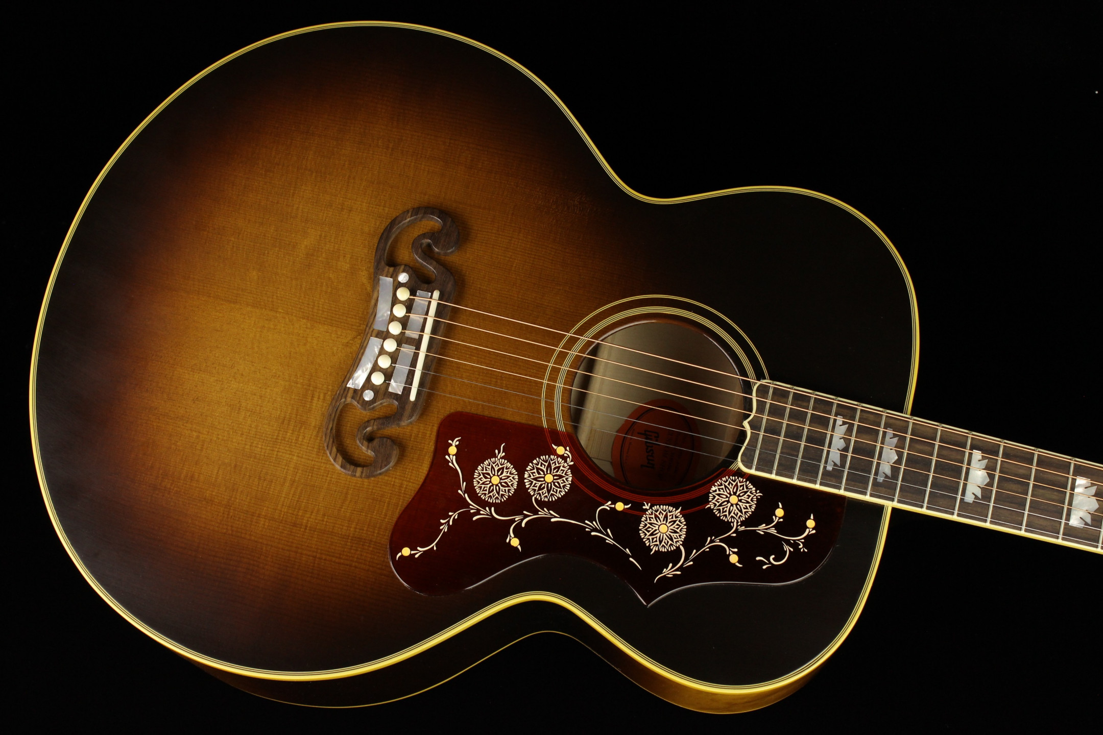 Pickguard: Tortoise Hand-engraved with the J-200’s traditional Floral and Vine Design