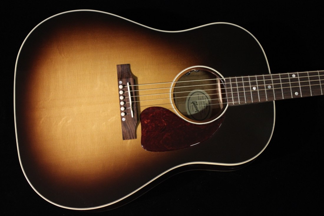 The J-45 Standard features a solid mahogany back and sides, premium sitka spruce top, nickel Grover tuners, rosewood fretboard with dot inlays, rosewood bridge and a mahogany neck.